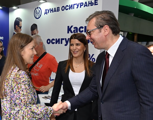 Na „dunavskom“ štandu dočekali su ga Tatjana Vukić, predsednica Nadzornog odbora, kao i Ivana Soković, predsednica, i Miloš Milanović i Bojan Raičević, članovi Izvršnog odbora Кompanije „Dunav osiguranje“.